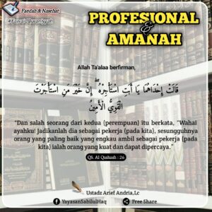 Berkemampuan (atau profesional) dan amanah adalah dua hal yang patut jadi penilaian dalam mengembankan tugas kepada seseorang.